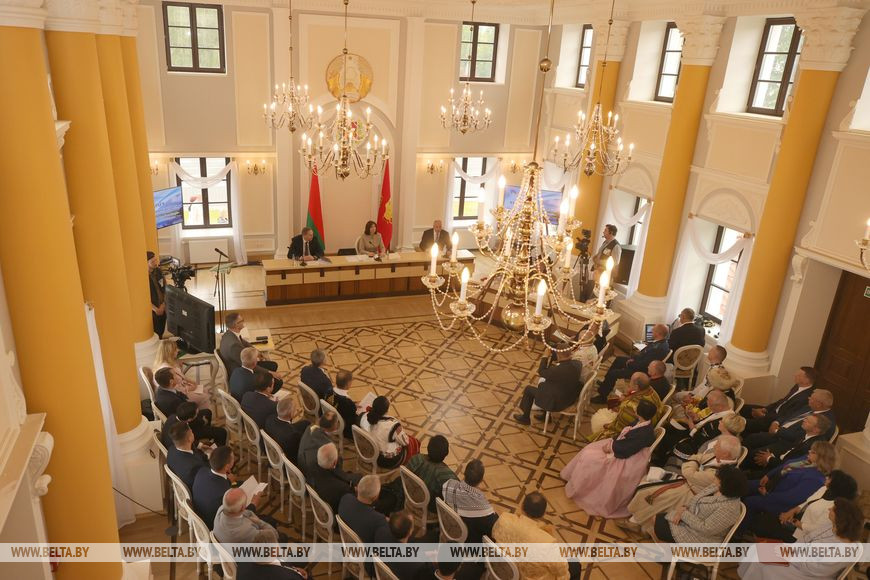 "Эта боль откликается в сердцах людей через много лет. Президент правильно сказал, что у нацизма нет национальности. И мы не должны забыть о тех ужасах, чтобы не допустить их снова. Эта книга будет использоваться для воспитания подрастающего поколения. Люди погибали за право жить на своей земле, и пока мы будем помнить об этом, мы будем сохранять бдительность и не допустим повторения", - сказал председатель Гродненского облисполкома Владимир Караник. Он вручил книгу "Сестры Хатыни" как памятный подарок председателю Совета Республики Наталье Кочановой.