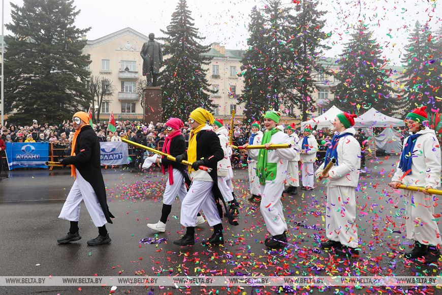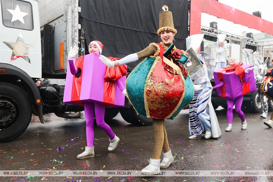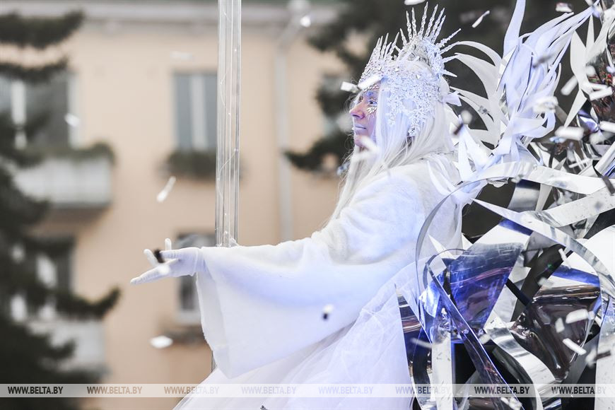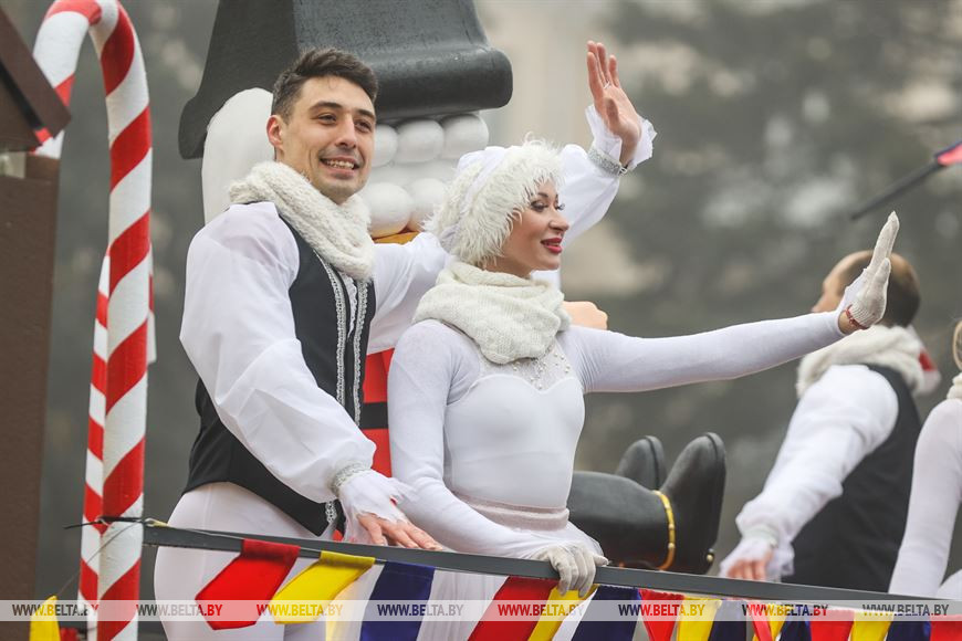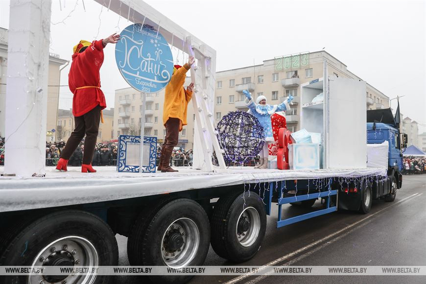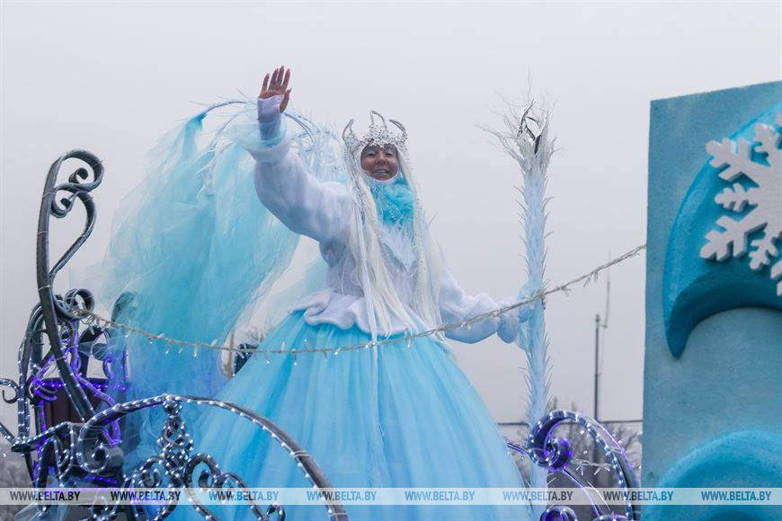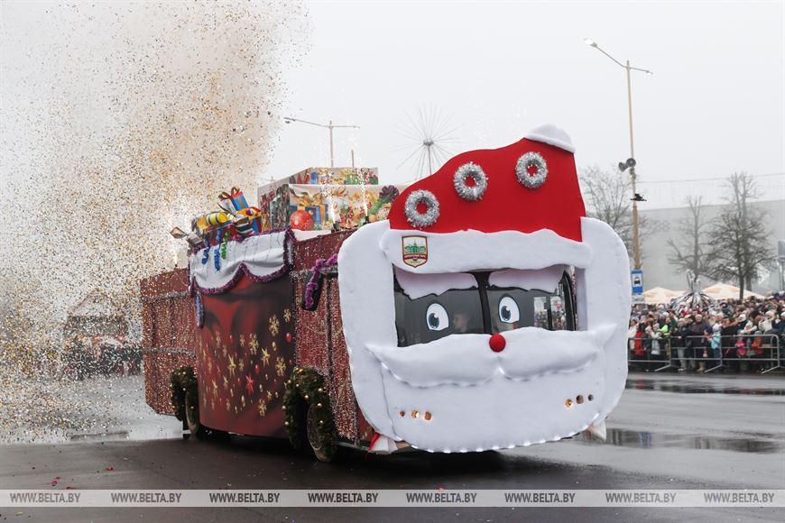 Официальную часть продолжил красочный зимний парад стилизованных машин с участием предприятий, организаций и творческих коллективов области и города. В колонне, которую возглавили Дед Мороз и Снегурочка, проехали около двух десятков автомобилей со стилизованными платформами. Первые - платформа-паровоз и платформа-электровоз - принадлежали Барановичскому отделению Белорусской железной дороги. Брестский мясокомбинат оформил свою платформу в виде сказочного уголка Лапландии, ОАО "Савушкин продукт" подарил фрагмент балета "Щелкунчик" в исполнении артистов Большого театра. ООО "Диприз" привезло мини-зоопарк. Удивили и порадовали зрителей КУП "Брестжилстрой", Брестский ликеро-водочный завод, птицефабрика "Дружба" и другие участники парада.