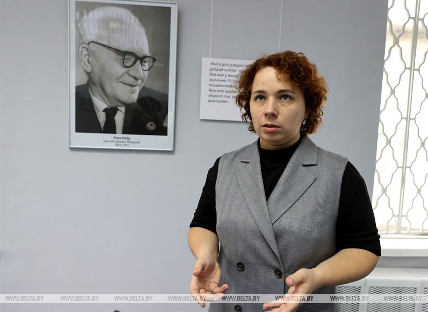 16 мая, Витебск /Алеся Пушнякова - БЕЛТА/. В Витебске правнучка Янки Мавра, выдающегося белорусского детского писателя, Василина Мицкевич рассказала студентам о малоизвестных фактах его биографии, родстве с Якубом Коласом и уникальных экспонатах выставки в областном краеведческом музее, которая посвящена 140-летию со дня рождения классика, передает корреспондент БЕЛТА.