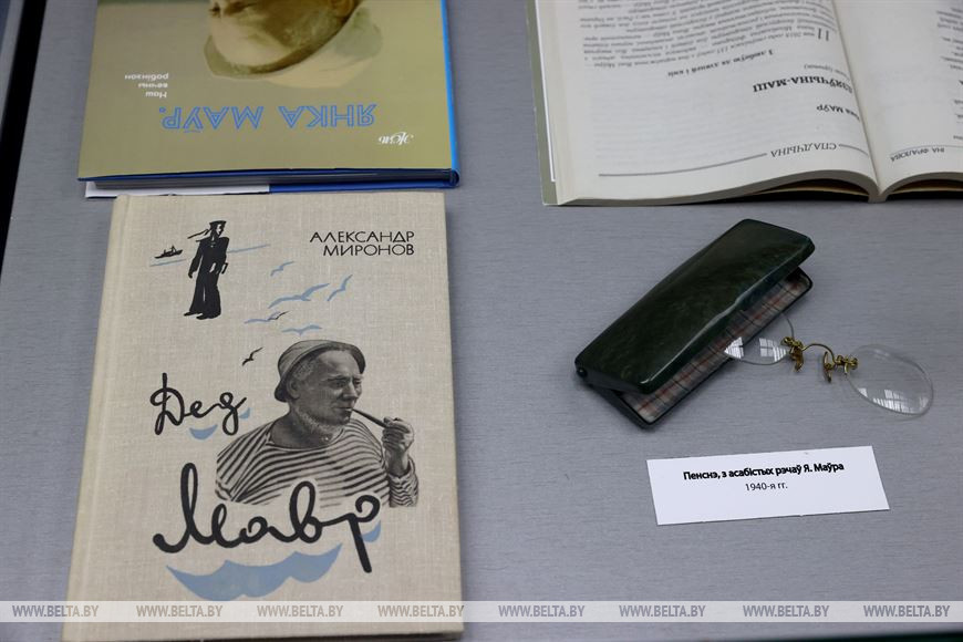 "Здесь экспонируется много фотографий из нашего семейного архива, на них изображен Янка Мавр в разные периоды жизни. Есть уникальные предметы, например, оригинал книги с автографом, которую прадед подарил моему дяде - Константину Михайловичу Мицкевичу, полному тезке Якуба Коласа. На выставке можно увидеть личные вещи прадедушки, его письменные принадлежности, а также узнать немало фактов, не встречающихся в энциклопедиях", - сообщила Василина Мицкевич.