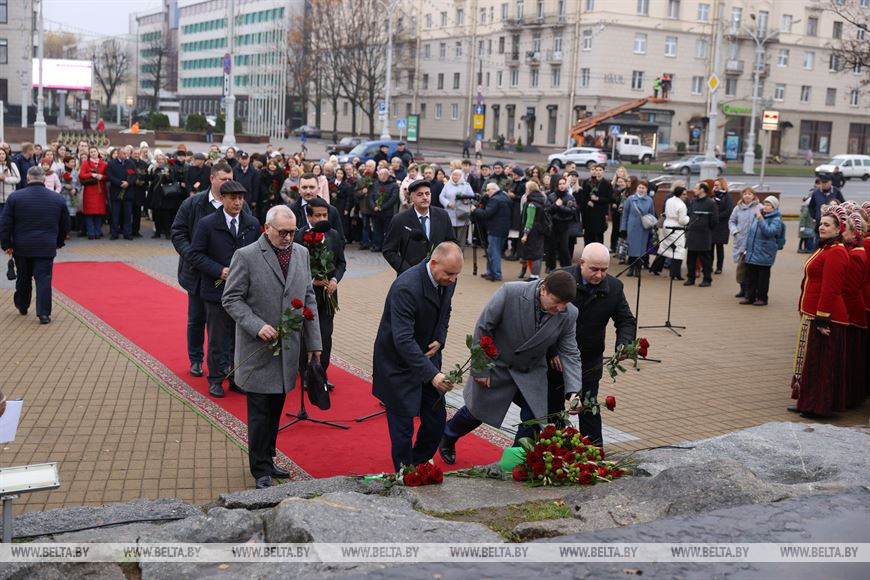3 ноября, Минск /Корр. БЕЛТА/. Якуб Колас отдавал всего себя нашей белорусской литературе, всегда сражался за возрождение родного края. Таким мнением с журналистами на торжественной церемонии возложения цветов к памятнику Якуба Коласа на площади его имени в Минске поделился министр культуры Анатолий Маркевич, передает корреспондент БЕЛТА.