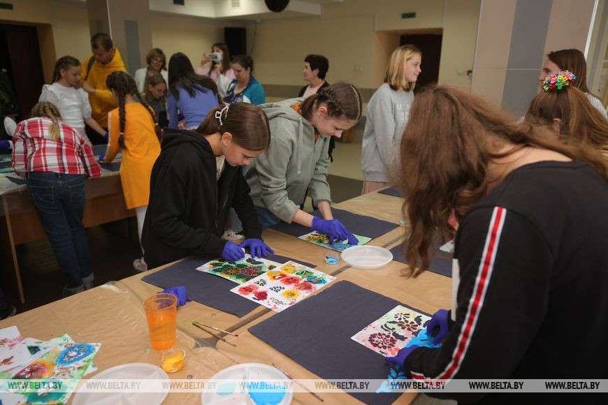 "Людей, как правило, к нам приходит очень много. Им любопытно. Поэтому из раза в раз материалов готовим все больше, чтобы хватило всем и люди не были разочарованы. Участники мастер-класса иногда приятно удивляют и радуют. Так, например, в Столине больше всего запомнилась коллективная работа взрослых. Они сделали расписную скатерть с природными мотивами. Работа и по композиции грамотная была, и по цветовому решению очень интересная", - поделилась искусствовед галереи "АртХаос" Ксения Тихонова.