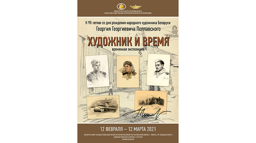 9 февраля, Минск /Корр. БЕЛТА/. Временная экспозиция "Художник и время", приуроченная к 90-летию со дня рождения народного художника Беларуси, лауреата Государственной премии Георгия Поплавского, откроется 12 февраля в Белорусском государственном музее истории Великой Отечественной войны. Об этом БЕЛТА сообщили в учреждении.