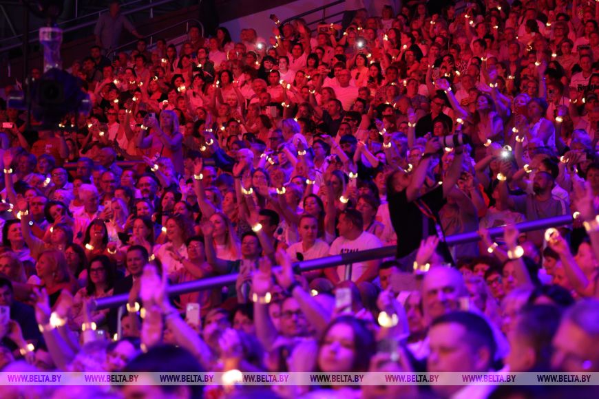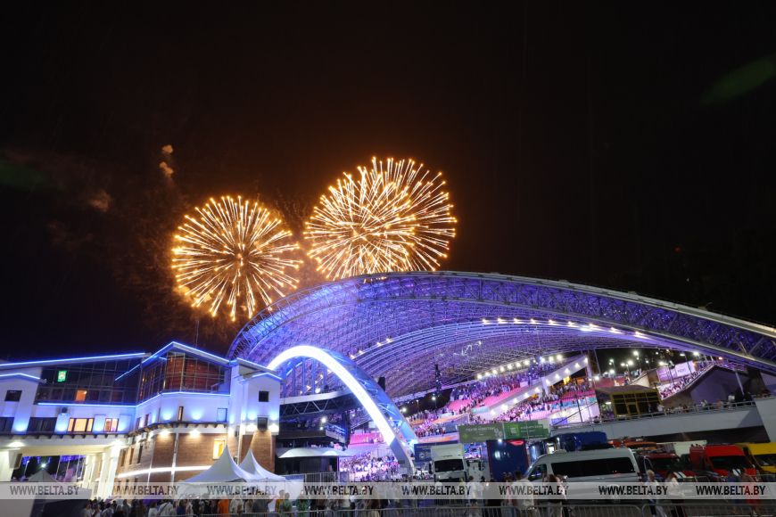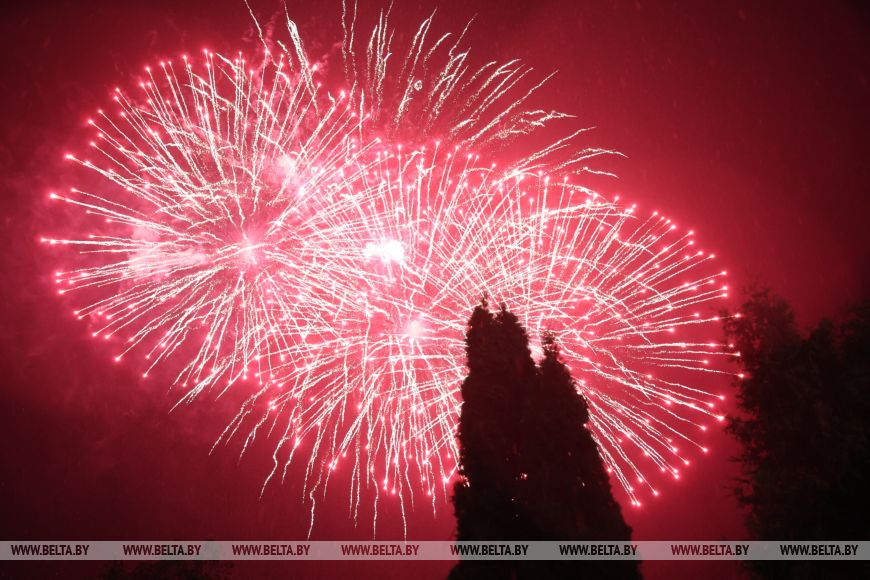 Танцевальные коллективы подарили зрителям незабываемые минуты, окунув в мир прекрасного хореографического искусства. В финале участники мероприятия спели "За Беларусь". Завершился концерт красочным фейерверком, окрасившим ночное небо над Летним амфитеатром.-0-