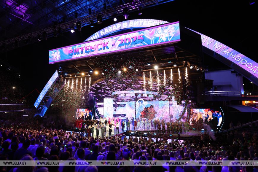 Композитор Александра Пахмутова передала видеопривет участникам фестиваля и отметила, что нежно любит Беларусь. На сцене прозвучала песня "Беловежская пуща", к которой она написала музыку. Этот нетленный хит знают на разных континентах и поют представители многих стран. Поздравления в адрес фестиваля также прислали генеральный секретарь СНГ Сергей Лебедев, министры культуры Казахстана, Кубы, Королевства Камбоджа. Теплые слова прилетели из Монголии, Мьянмы, Узбекистана, Сербии и Молдовы.