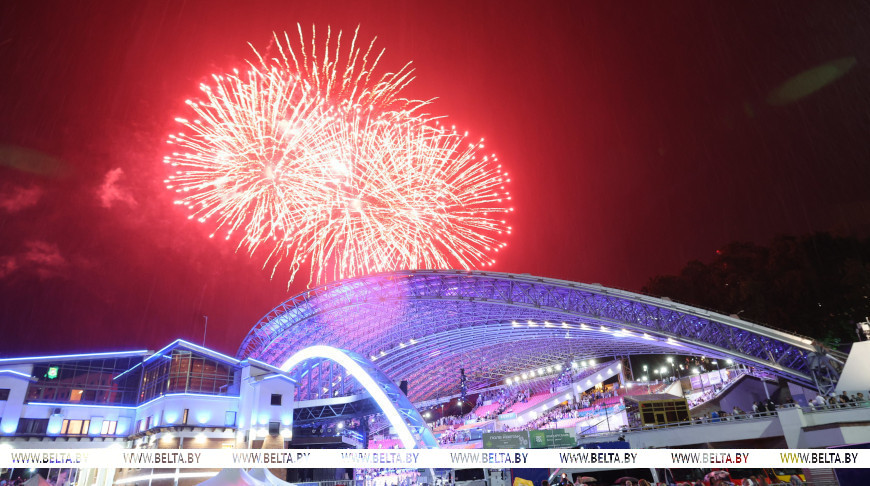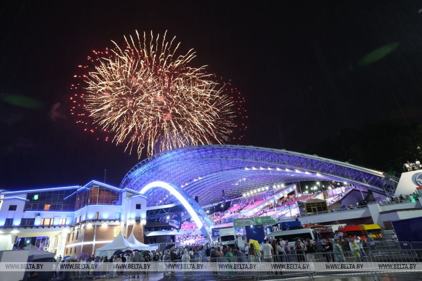 Танцевальные коллективы подарили зрителям незабываемые минуты, окунув в мир прекрасного хореографического искусства. В финале участники мероприятия спели "За Беларусь". Завершился концерт красочным фейерверком, окрасившим ночное небо над Летним амфитеатром.-0-