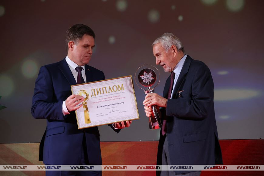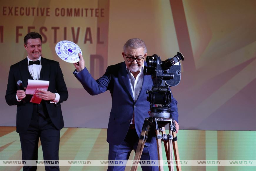 Заместитель премьер-министра Беларуси Игорь Петришенко зачитал послание Президента и вручил специальный приз Президента Республики Беларусь "За сохранение и развитие традиций духовности в киноискусстве" белорусскому режиссеру, композитору, заслуженному деятелю искусств Беларуси Игорю Волчеку.