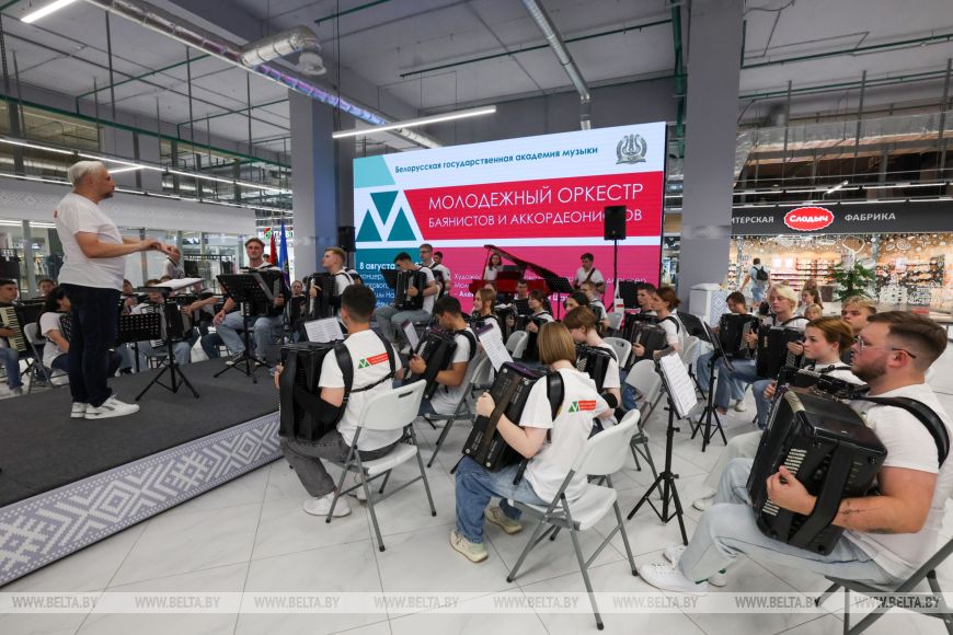 9 августа, Минск /Корр. БЕЛТА/. В Минске проходит новый образовательно-творческий проект "Молодежный оркестр баянистов и аккордеонистов". Первый концерт прошел 8 августа на концертной площадке торгового центра "Першы Нацыянальны гандлёвы дом".-0-