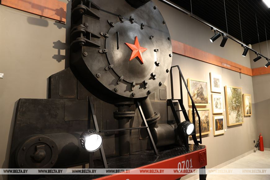 У нового музея есть белая торжественная колоннада, однако само здание выполнено в темных тонах - это напоминание о войне и трагических событиях тех лет. На площадке перед учреждением, чуть правее от центрального входа, установлен памятник погибшим в годы Великой Отечественной войны служащим районного железнодорожного депо. Он сохранился с 60-х годов прошлого века и органично вписался в общую концепцию. Уже на входе в самом здании, с правой стороны, посетителей встретит большой барельеф Константина Заслонова, слева - мультимедийная установка, которая ознакомит с основными экспозиционными блоками. Еще одним центральным объектом стала объемная картина Оршанского железнодорожного узла.