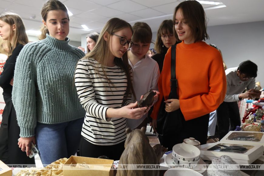 В рамках подписанного соглашения "Белхудожпромыслы" передали образцы народного творчества, созданные белорусскими мастерами, чтобы студенты и гости общежития могли с ними ознакомиться. На выставке представлены изделия из лозы, керамики, традиционная вышиванка, пояса и другие предметы народного промысла, отражающие качество и историю нашей культуры.