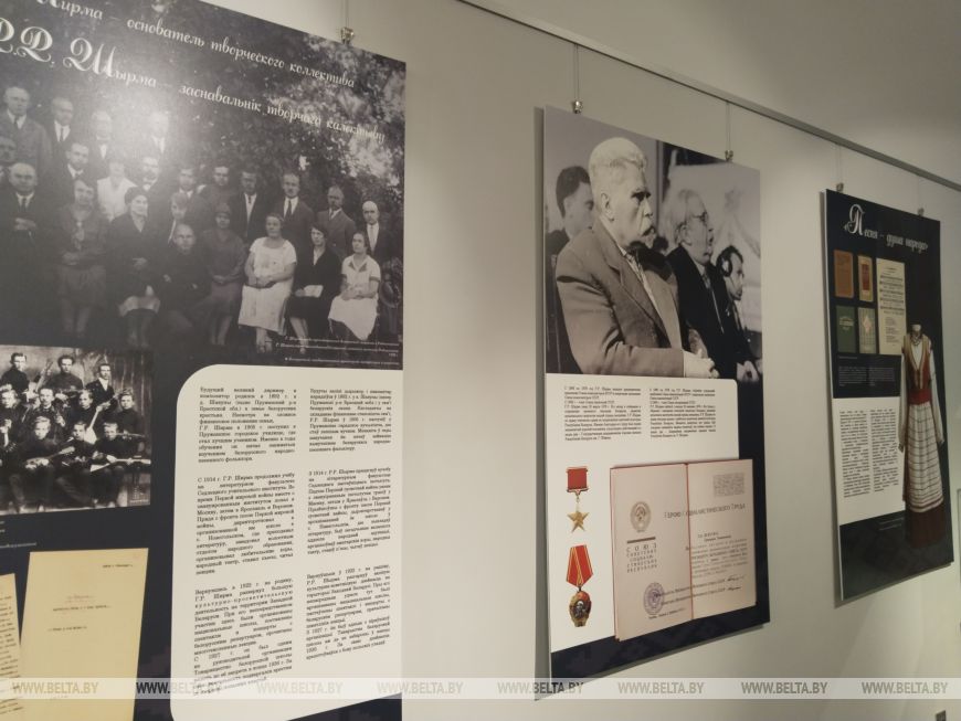 "Тематические выставка разделена на несколько блоков. Первый рассказывает про основателя капеллы Григория Романовича Ширму, который был не только талантливым композитором и дирижером, но также фольклористом и краеведом. Очень долгие годы он собирал белорусские народные песни, которые легли в основу творчества его коллектива. В экспозиции можно увидеть его личные вещи, фотографии и документы из фондов Музея. Далее мы рассказываем о прародителе капеллы - Белорусском ансамбле песни и танцы, основанном в 1940 году. После плавно переходим к современному состоянию творческого коллектива", - пояснила Валерия Езис. По ее словам, при работе над экспозицией были использованы инновационные технологии. На планшетах размещены QR-коды, с помощью которых можно прослушать оригинальные записи белорусских народных песен в исполнении капеллы. Графическую часть планшетов хорошо дополняет предметный ряд, где создатели выставки хотели показать не только саму деятельность капеллы или предметы, связанные с жизнью и творчеством ее основателя, но и в некоторой степени историю белорусской культуры и этнографиии, то, чем было вдохновлено творчество коллектива.