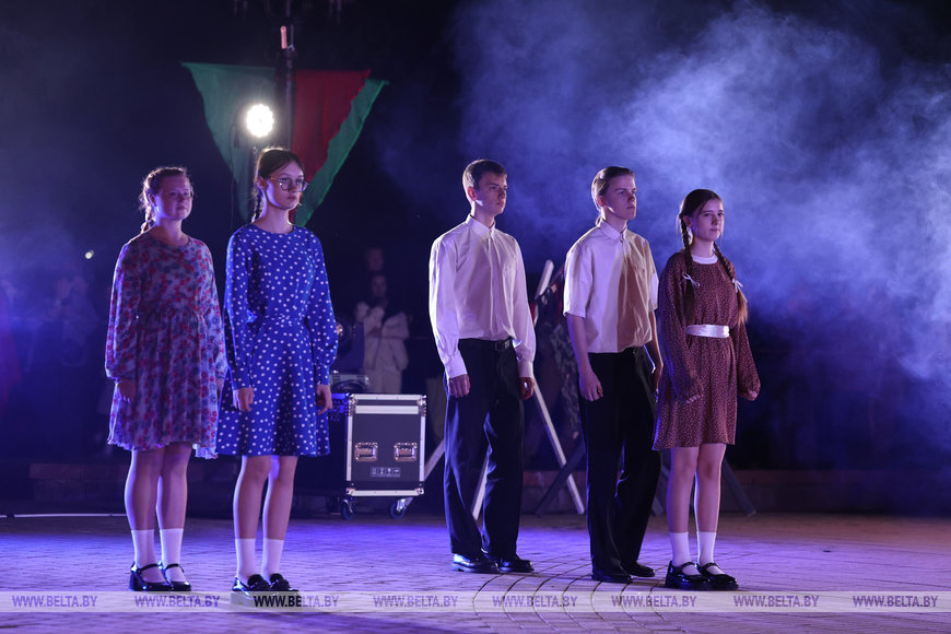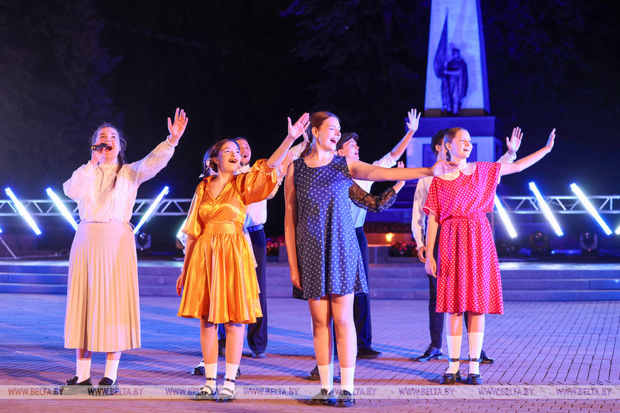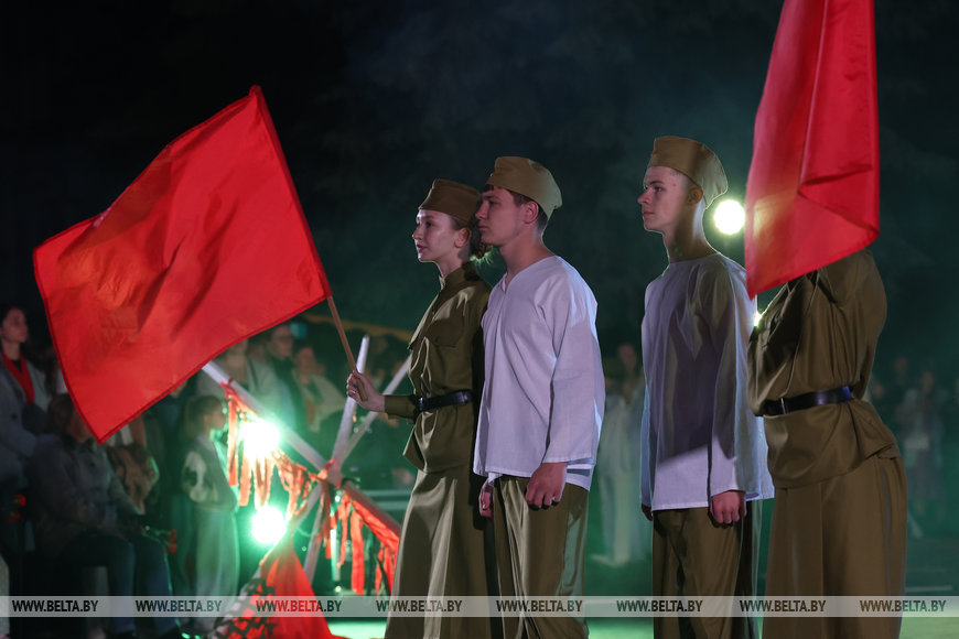23 июня, Гродно /Корр. БЕЛТА/. Учащиеся и педагоги Гуманитарного колледжа ГрГУ им. Янки Купалы в День всенародной памяти жертв Великой Отечественной войны и геноцида белорусского народа представили постановку "Тебе, солдат 41-го, от правнуков Победы", передает корреспондент БЕЛТА.