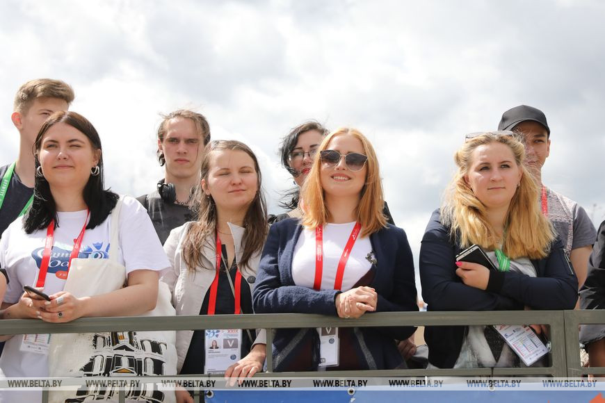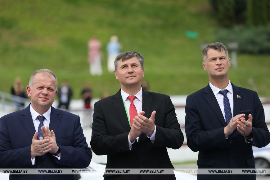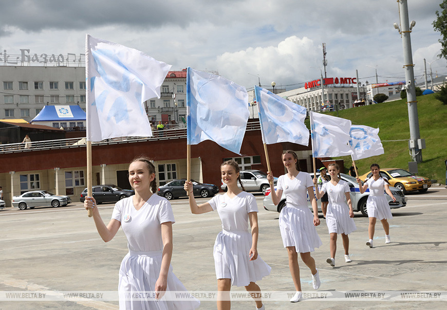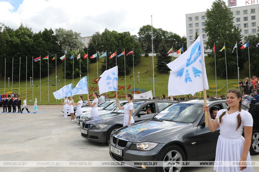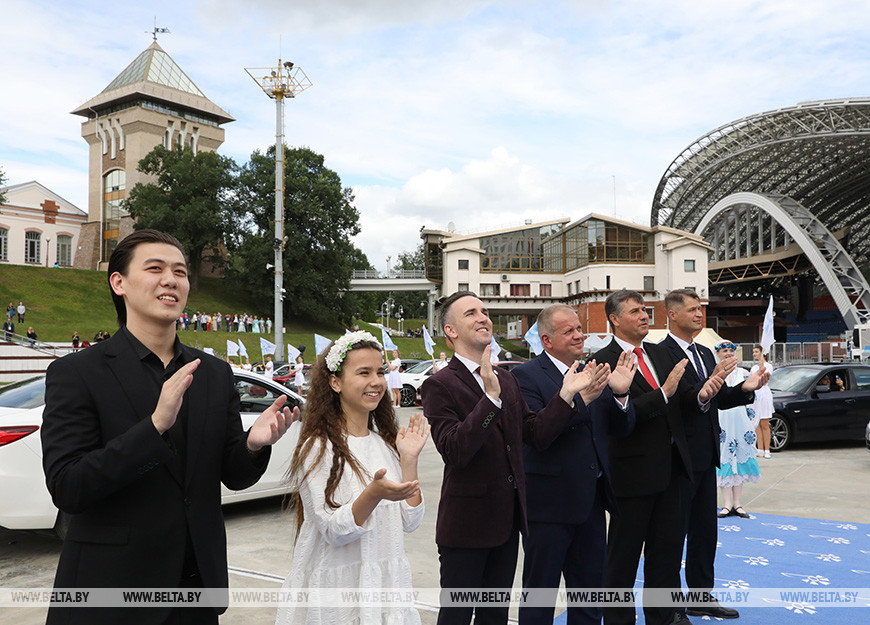 16 июля, Витебск /Андрей Щербицкий - БЕЛТА/. Обладатели Гран-при Международного конкурса исполнителей эстрадной песни "Витебск-2019" Адильхан Макин и Международного детского музыкального конкурса "Витебск-2019" Ксения Галецкая торжественно подняли сегодня флаг XXIX Международного фестиваля искусств "Славянский базар в Витебске", передает корреспондент БЕЛТА.