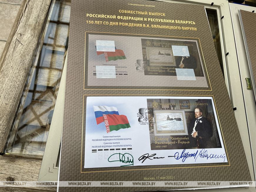 17 мая, Москва /Эдуард Пивовар - БЕЛТА/. Почтовые марки к 150-летию выдающегося белорусского художника Витольда Бялыницкого-Бирули выпустили в Беларуси и России. Церемония официального гашения этих государственных знаков почтовой оплаты двух стран состоялась сегодня в Москве во время открытия выставки живописных картин мастера, передает корреспондент БЕЛТА.