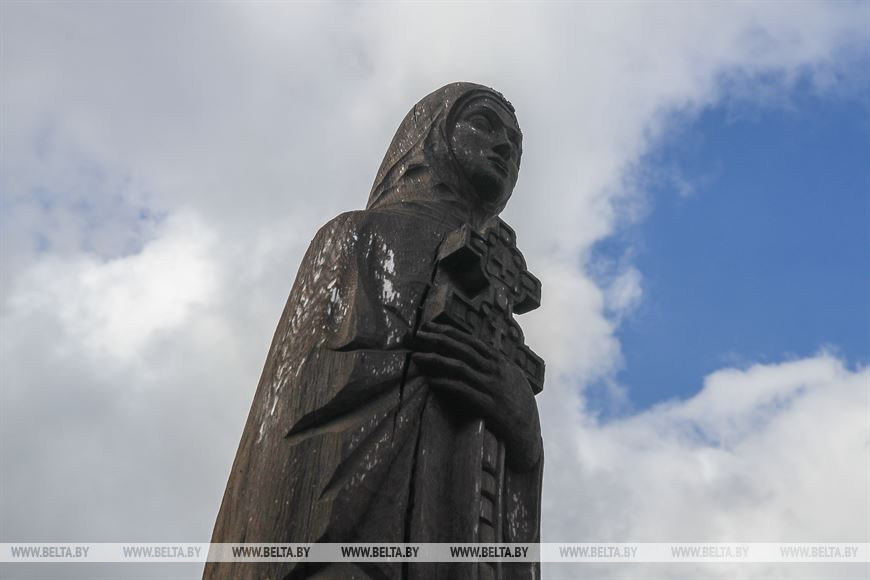Чуть позже организовали пленэр по созданию деревянных парковых скульптур в Брестской области. Он был посвящен памяти Якуба Коласа. Анатолий Турков создал женский образ из поэмы "Новая зямля". Надо сказать, для своих скульптур чаще всего он выбирает именно женские образы. Особенное внимание уделяет чертам лица, отражению эмоций. "Моя работа ко Дню письменности в Каменце - Евфросиния Полоцкая. Хотелось передать именно святость на ее лице. Делал скульптуры королевы Цецилии Ренаты Австрийской, Боны Сфорцы. Обязательно ищу описание личности в литературе, портреты. На пленэрах нам дают семь-десять дней, за такой промежуток сложно что-то сделать досконально, но по максимуму стараешься вытянуть из дерева. Тут, если лишнее отрезал, уже не добавишь. Надо работать, потихонечку убирая. Нужно очень хорошо себе представлять всю композицию из дерева, еще только приступая к работе", - пояснил скульптор.