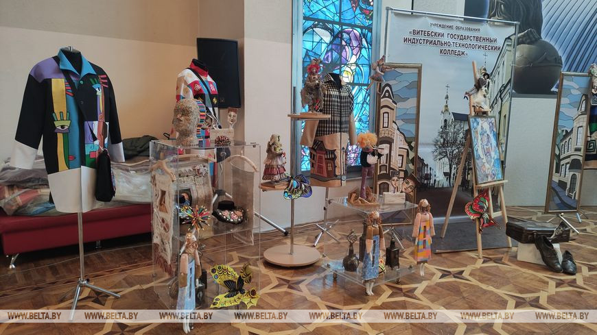 Недалеко от импровизированного салона красоты расположилась выставка Витебского индустриально-технологического колледжа "Аксиома", посвященная художникам города. В нее вошли лучшие модели одежды и декоративных сумок, выполненные руками учащихся под руководством мастеров. "В основном у нас швейное направление, но мы стараемся его приукрасить и другими квалификациями, чтобы нашим детям было интересно учиться", - поделилась мастер производственного обучения Витебского государственного индустриально-технологического колледжа Татьяна Федосенко.