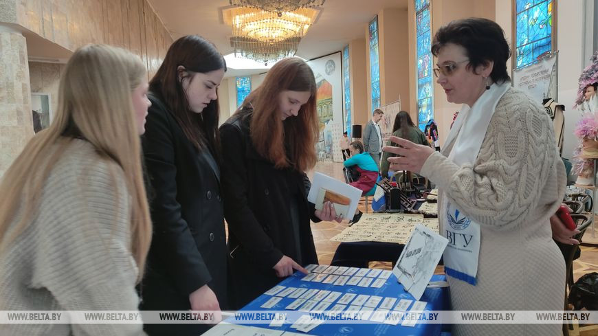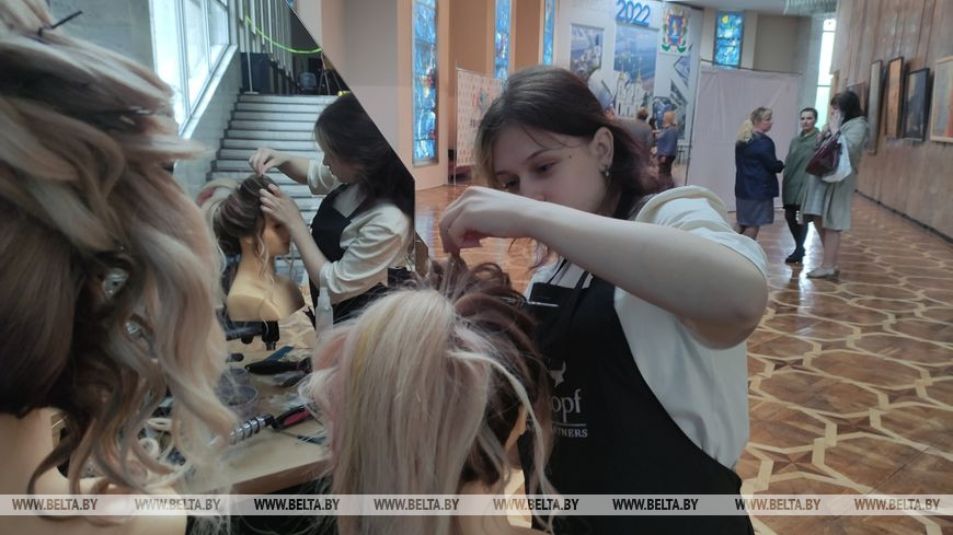 Во второй день участников конкурса принимал концертный зал "Витебск". Здесь открылся арт-марафон "Время новых традиций - в творчестве молодежи" (девиз нынешнего фестиваля). Показательные интерактивные выступления подготовили коллективы колледжей и вузов города. В творческой мастерской Витебского индустриального колледжа работали художники-модельеры, парикмахеры и визажисты. Девушки давали рекомендации по выбору цвета или стрижки, оценивая внешние данные человека. "Наш колледж часто сюда приезжает, нас приглашают делать прически на конкурсы, концерты. Недавно работали с образами в стиле 1980-х, 1960-х", - поделилась учащаяся колледжа Елизавета Ратокля. Она добавила, что участие в таких масштабных проектах позволяет студентам учебных заведениий презентовать свои способности.