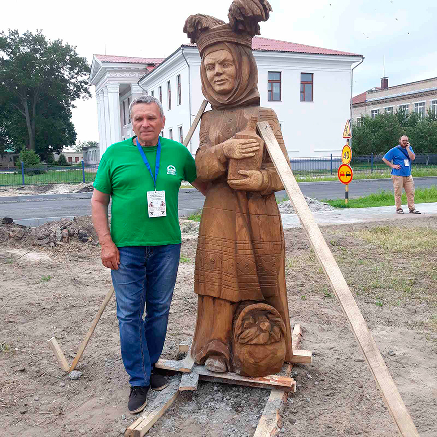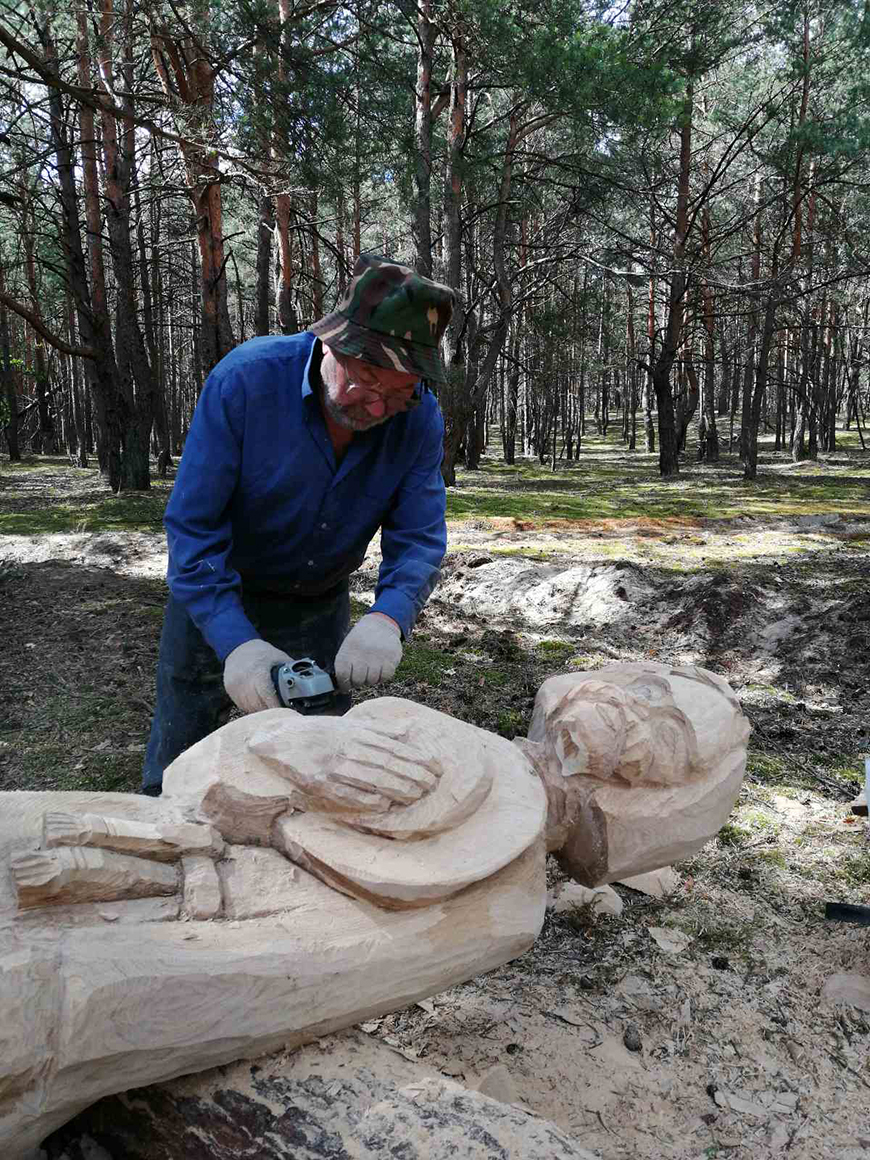 Главную героиню вырезал народный мастер Беларуси из Каменца Анатолий Турков. Его коллега из Гомеля Василий Силков создал образ отца невесты. Минчанин Александр Журавлевич выполнил фигуру матери. Александр Лазерко из Брестского района работал над образом свата. Из-под топора резчиков из Барановичей, Дрогичина, Минской области вышли скульптуры молодоженов и деревенских музыкантов.