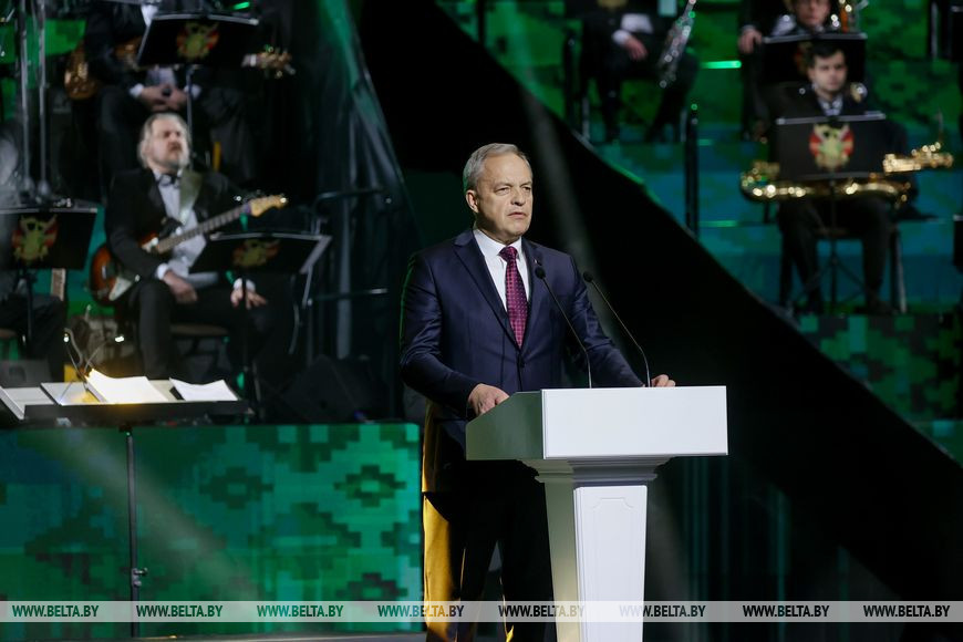 "Мы не акцентируем внимание на том, что у нас сегодня есть российские хедлайнеры либо белорусские хедлайнеры. Сегодня хедлайнер один - это Президентский оркестр, а гости пришли с удовольствием нас поздравить и порадовать наших зрителей", - отметил Максим Приходовский.