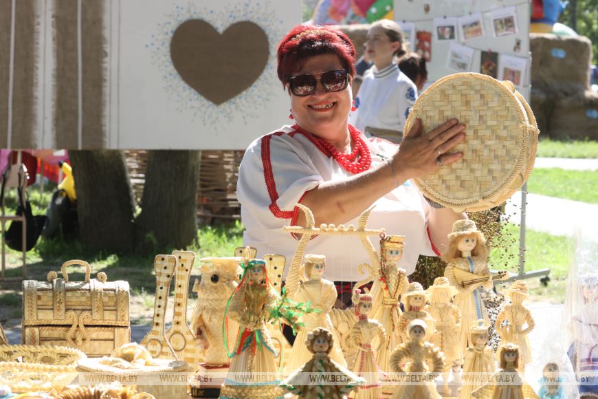 Андрей Павленко и Ульяна Гусева представляют музей льняных промыслов из города Вышний Волочек Тверской области. Их уголок манит гостей праздника ароматами разнотравья. "Мы приехали сюда издалека, чтобы познакомиться с регионом, привезли работы наших мастериц ткачества трав. Здесь все очень душевно, уютно, по-домашнему, с улыбками и радостью. Еще нам интересна сама организация фестиваля, потому что в этом месяце планируем провести у себя первый фестиваль льна. Были в Ярославле, теперь и в Беларуси", - рассказал мастер."Наши предки, в основном дедушки, плели коврики из березовых ветвей для бани. На полок клали - и получается массаж и сверху, и снизу. Плюс аромат прекрасный. А мы уже на современном этапе придумали использование подобных полотен в декоративных целях. Плетем панно из лекарственных ароматных трав. Их можно разместить не только в бане, но и на кухне, в спальне, украсить беседку и др. Такие панно, пока зеленые, радуют своей свежестью, натуральной красотой и ароматом. Впрочем, их можно использовать и два-три года", - добавила Ульяна Гусева.