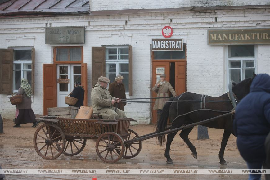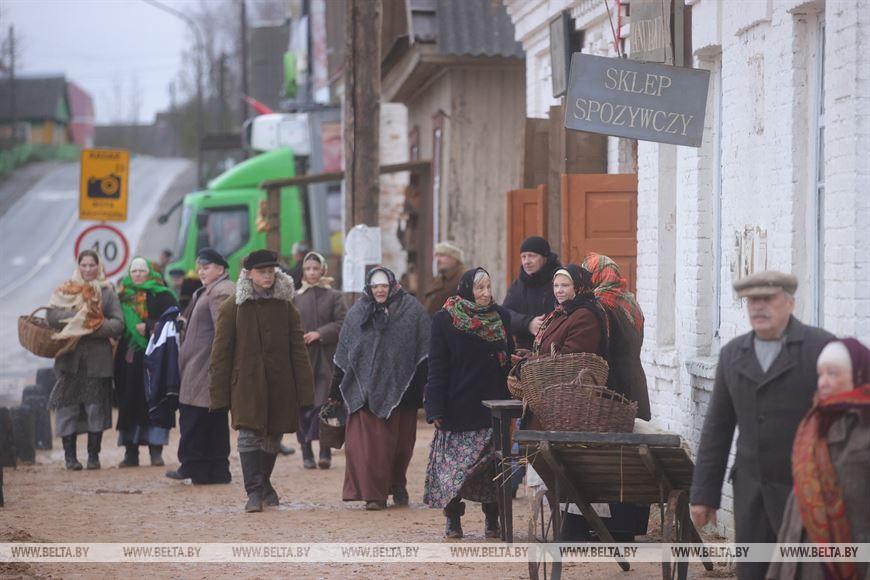 Агрогородок Гольшаны, кстати, выбран для съемок неслучайно. "Если посмотреть фотографии Столбцов того времени, то они абсолютно похожи на Гольшаны - по форме постройки, даже по крышам. Новые крыши, перекрытые металлом, мы будем убирать с помощью графики. Где-то немножко подбелили домики, на окна, где стоят стеклопакеты, сверху поставили накладки. Это очень удачное место, которое мы нашли за время долгих поисков", - отметила директор съемочной группы Ирина Филиппова.