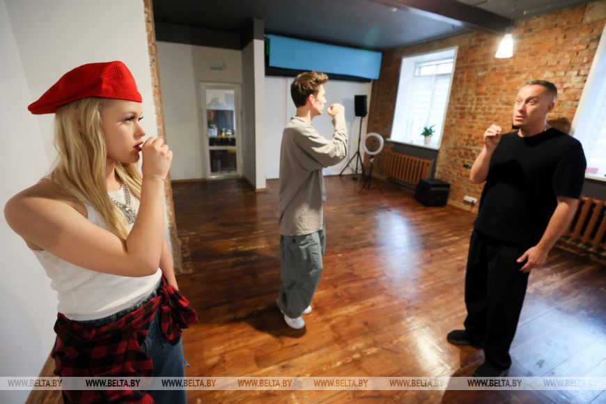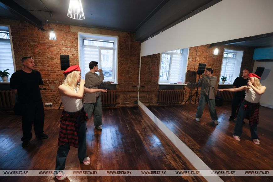 Поддерживать и дополнять Анастасию на сцене будут артисты балета. Хореограф-постановщик Андрей Харлович рассказал, что номер является одним из самых сложных в его практике. По сюжету в действиях сложная конструкция, репетировать с которой в Минске было невозможно. Поэтому ребята учили движения, а окончательно собирать воедино будут уже в Москве. Однако все довольны созданной композицией и хореографией. "Мы искали новые необычные движения, чтобы удивить не только зрителей в зале, но и телезрителей. Ведь это совершенно две разные картинки", - отметил он и добавил, что с молодой исполнительницей прорабатывают каждое движение вплоть до поворота головы или подъема руки.