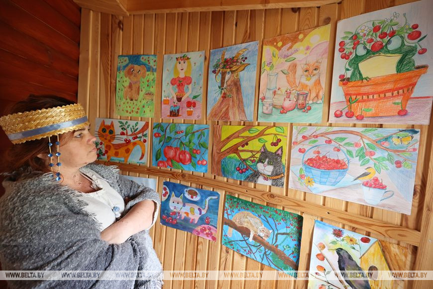Брендовый фестиваль Глубокского района стартовал сегодня с престиж-встречи в резиденции Вишневой королевы. Усадьба ягодной царственной особы представляет собой домик с пятью комнатами - по числу лепестков цветка вишни. Здесь можно увидеть картины, рисунки, фотохронику фестиваля. Также в домике королевы есть зал для угощения глубокской вишней, выведенной местным селекционером Болеславом Лопырем, памятник которому также находится на территории резиденции.