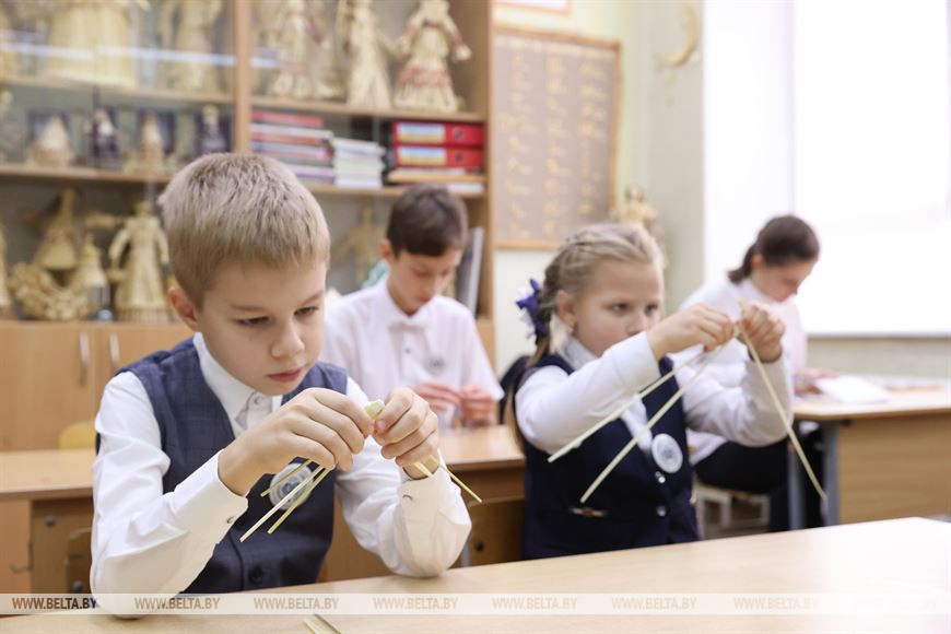 За партой рядом с Никандрой споро трудится четвероклассник Сергей Кухарчук. Мальчик пробовал свои силы и в вытинанке, и в соломоплетении, но уверенно выберет второе из двух вариантов. Руководительница студии Валентина Васильевна уверена, это потому, что у Сережи хорошо развита мелкая моторика рук, поэтому плетет он очень быстро.