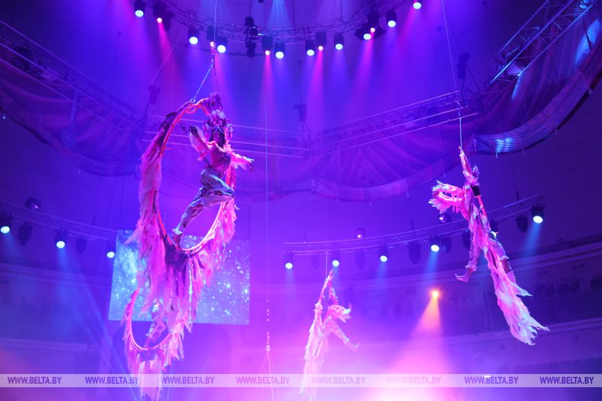 "Это совместный проект Казанского госцирка, Белгосцирка, Московского цирка Никулина на Цветном бульваре и Якутского цирка. Все участники будут равномерно представлены, наших номеров в программе около 40%. Здесь все, что связано с воздухом, конный аттракцион, есть балет, дрессированные медведи, овечки - всего 21 номер, все легкие, изящные, свето-звукооформленные. Просто фантастическая работа пара со светом. Слово "шоу" для цирка не совсем характерно, но здесь будет переплетаться цирковое искусство и шоу", - рассказал Владимир Шабан.