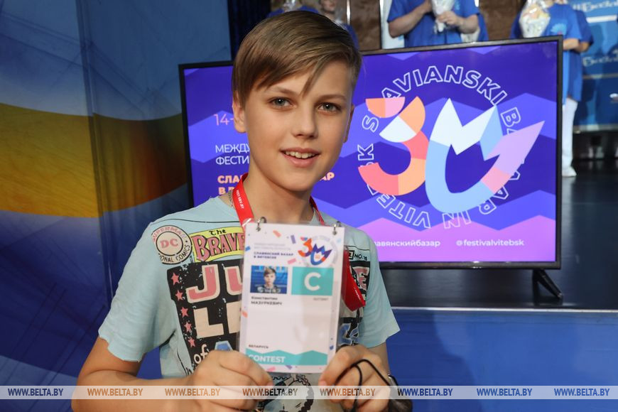 13-летний минчанин Константин Мазуркевич не раз становился победителем республиканских и международных вокальных конкурсов. Парень - обладатель Гран-при международного фестиваля-конкурса Aurora, лауреат I степени в двух номинациях конкурса "ПоколениеZ". Участие в национальном отборе на детский конкурс "Славянского базара в Витебске" принял впервые. По словам Константина, для него не играет большой роли очередность выступления. "Я буду стараться хорошо выступить и достойно представить Беларусь. У нас хорошая атмосфера, с многими ребятами я уже познакомился", - сказал он. В конце жеребьевки конкурсанты написали на бумажных самолетах свои желания и запустили их в витебское небо.