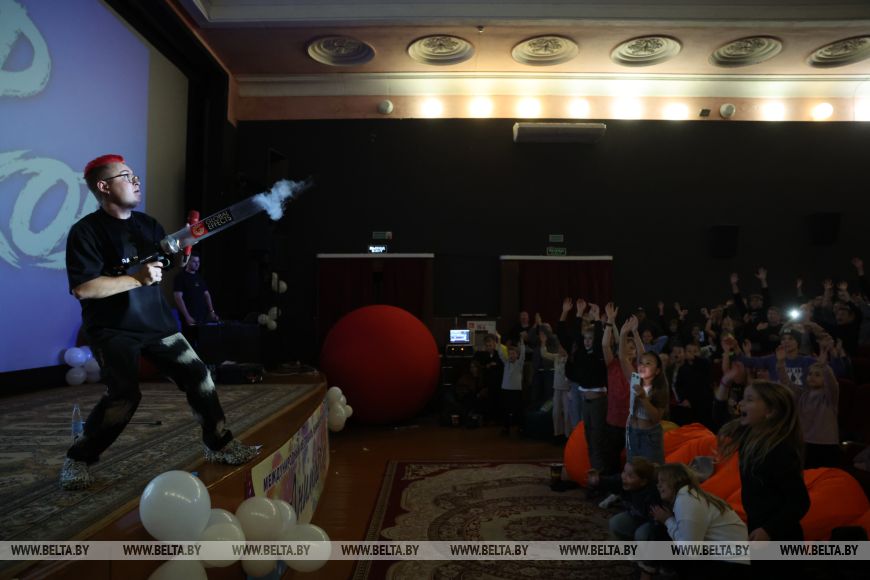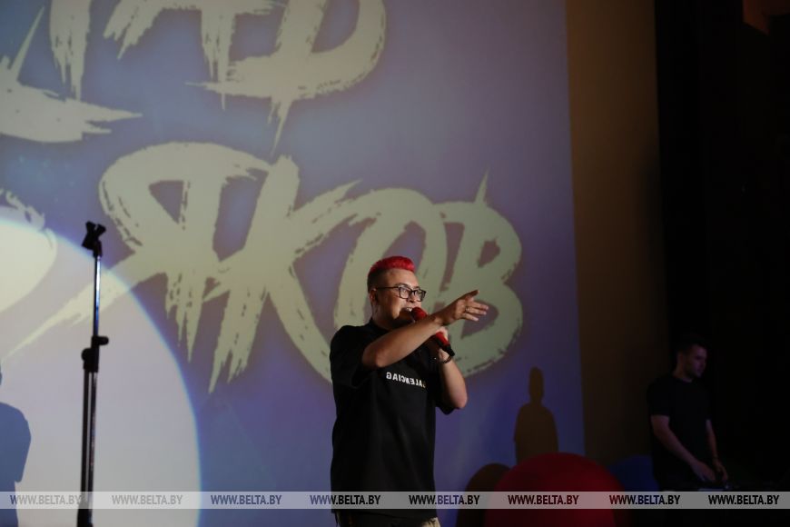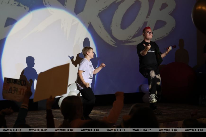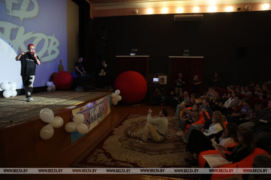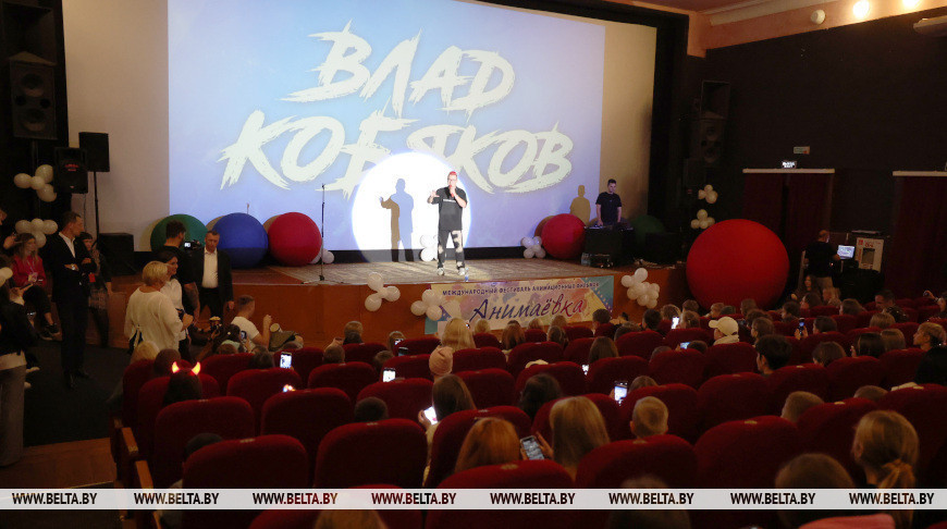 24 сентября, Минск /Корр. БЕЛТА/. В кинотеатре "Чырвоная зорка" в Могилеве в рамках XXVIII Международного фестиваля анимационных фильмов "Анимаевка-2025" прошла авторская встреча и концерт с видеоблогером, исполнителем, телеведущим МУЗ-ТВ и шоуменом Владом Кобяковым.-0-