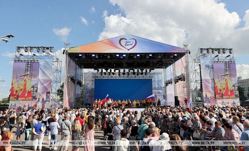Минск присоединился к празднованию Дня России. Накануне на сцену у Дворца спорта вышли творческие коллективы и звезды российской эстрады. Среди них Елена Ваенга, Александр Буйнов, Олег Газманов. Любимые хиты подпевали в унисон.