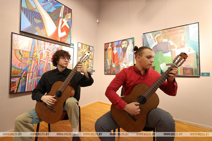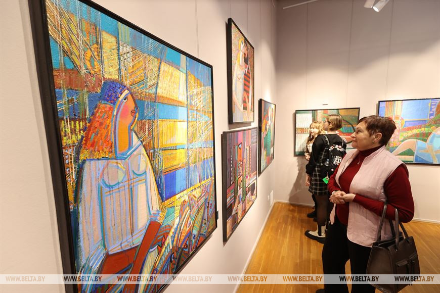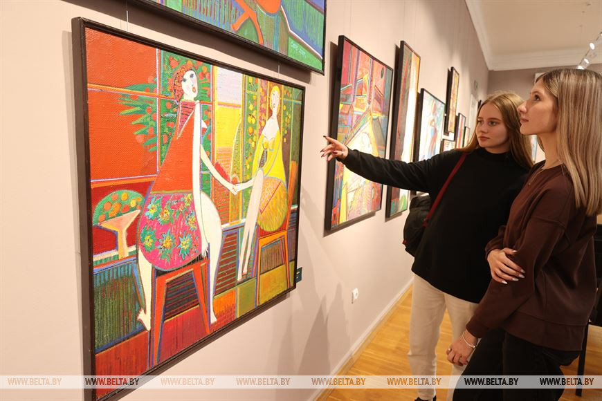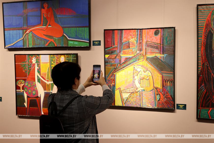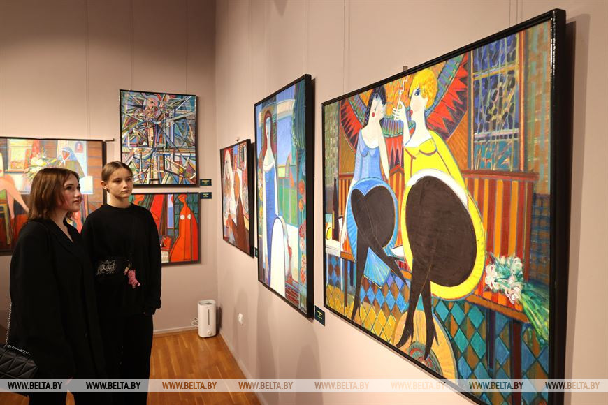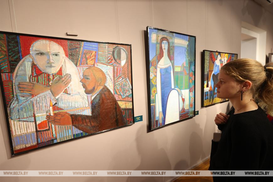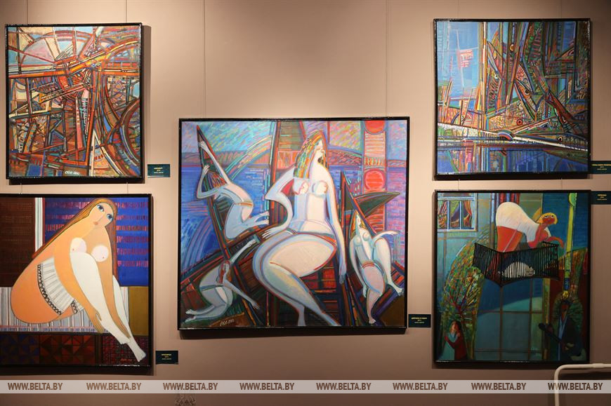Уроженец Лепельского района и известный в Беларуси живописец представил на суд витебского зрителя собрание из 44 своих картин, объединенных в общую экспозицию. Пластичные женские фигуры, выразительные образы простых людей, геометрические композиции, напоминающие разноцветные футуристические пейзажи - возле каждой работы мастера можно стоять долго, разглядывая каждую деталь. Две картины из этой коллекции пополнят музейный фонд Беларуси - работы "Тост за искусство" и "Похороны ветерана".