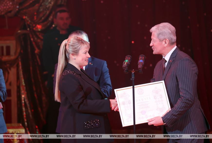 Министр культуры Анатолий Маркевич тепло поздравил коллектив Гомельского государственного цирка с 50-летним юбилеем. Лучшим из лучших сотрудникам вручил заслуженные награды. "Гомельский цирк уверенно шагает в ногу со временем, решая очень важные задачи по формированию новых программ с участием белорусских артистов и легендарных, любительских коллективов и студий, расширяя границы сотрудничества с зарубежными цирковыми компаниями, в первую очередь с нашими коллегами из России", - сказал он.