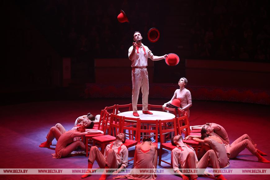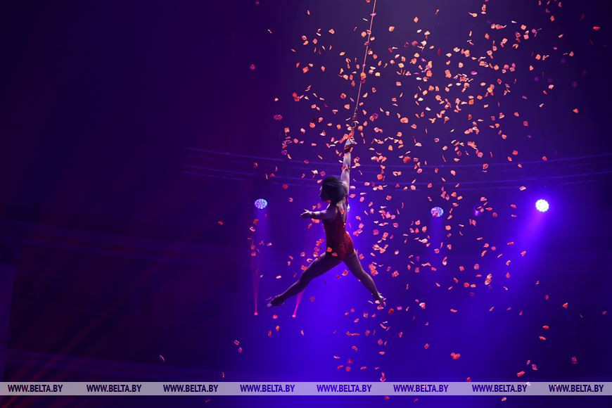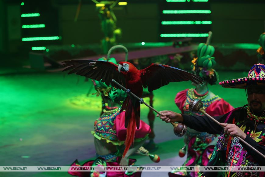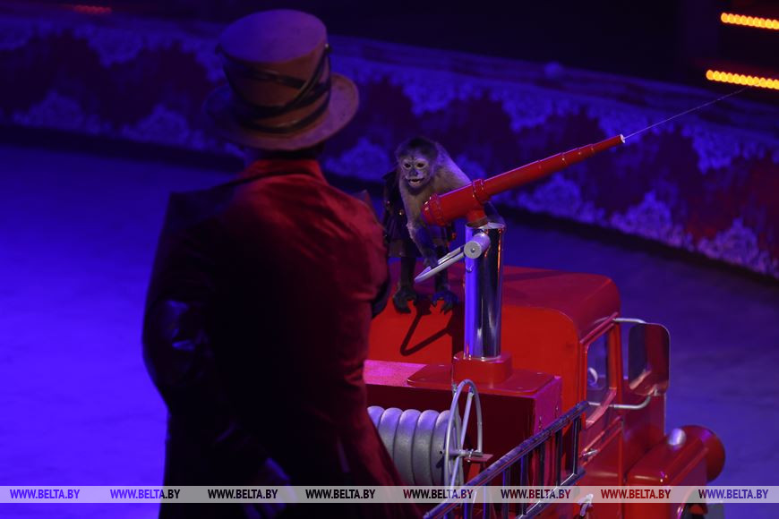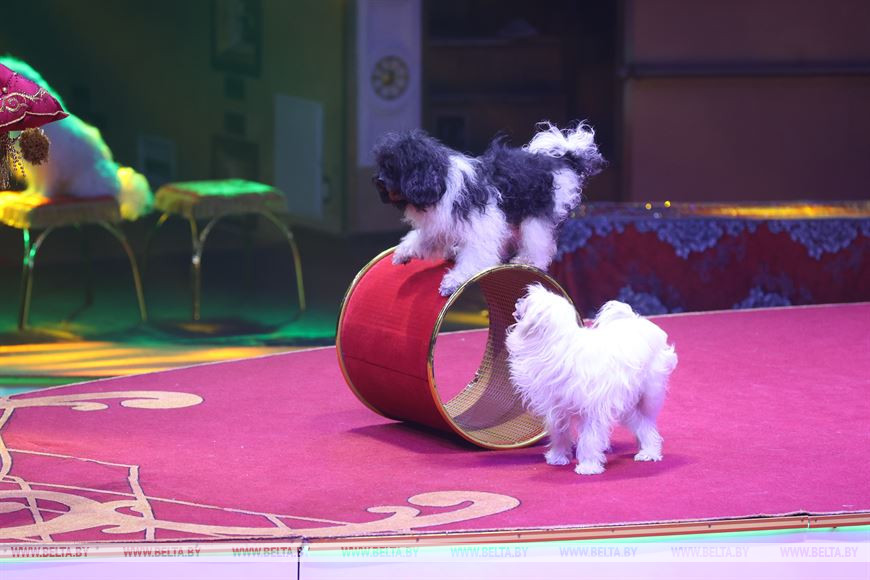 В Белгосцирке сегодня прошел генеральный прогон новой совместной с цирком Ю.Никулина программы. На минском манеже дрессированные собаки прыгали через кольца, обезьянки в костюмах катались на паровозе, медведи крутили педали велосипеда, а дрессированный попугай вызвал всеобщий восторг лунной походкой. Зрители тепло приняли воздушную гимнастку на корд-де-волане Марию Андрееву, парный эквилибр Алеси Лаверычевой и Романа Хаперского, акробатов-жонглеров со шляпами Екатерину и Максима Рубцовых, а также акробатов на скакалке под руководством заслуженного артиста России Сергея Рубцова.