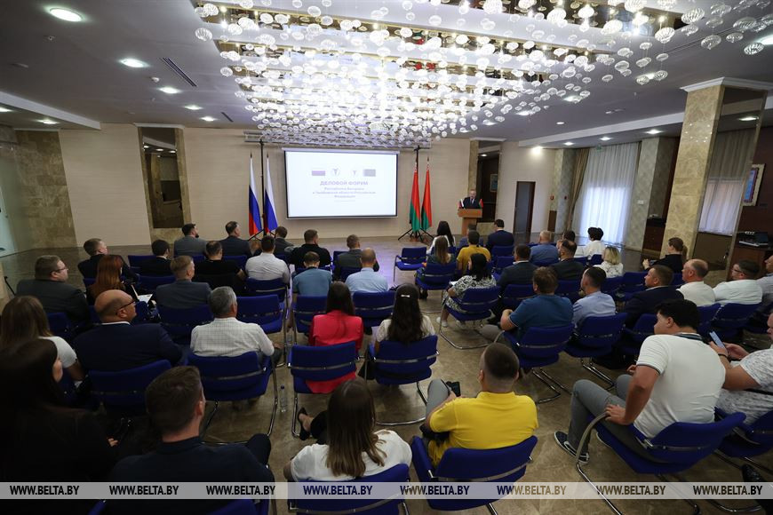 Деловой форум Беларуси и Тамбовской области России проводится для обсуждения актуальных вопросов и перспективных направлений развития двустороннего торгово-экономического взаимодействия. В пленарной части форума приняли участие председатель БелТПП Михаил Мятликов, министр по налогам и сборам Сергей Наливайко, губернатор Тамбовской области Максим Егоров, президент Тамбовской областной торгово-промышленной палаты Елена Воронина.-0-