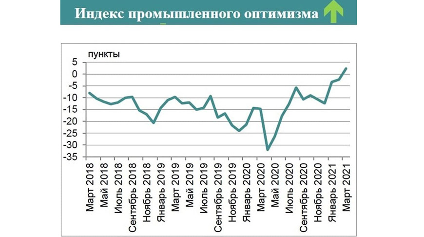 По его словам, этот оптимизм обусловлен тем, что в марте возросло промышленное производство. Об увеличении выпуска сообщили более 40% руководителей.