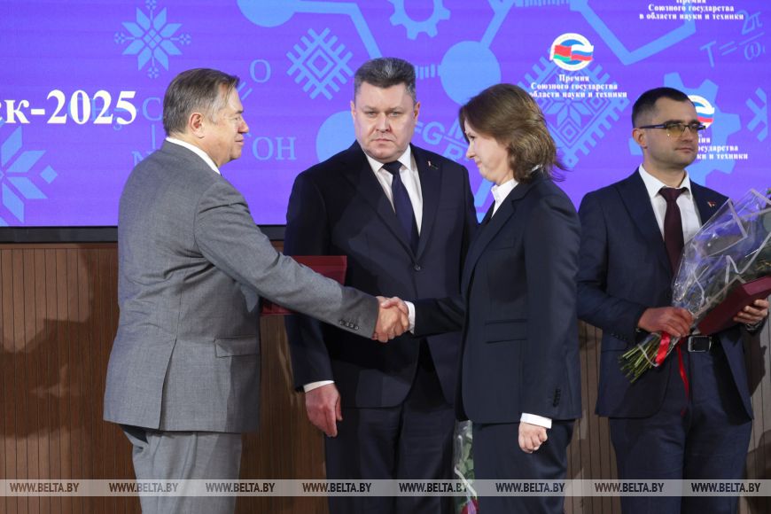 Торжественная церемония вручения премии Союзного государства в области науки и техники прошла сегодня в Минске. Премия в 2025 году присуждена двум авторским коллективам. Один из них награжден за разработку и практическое использование высокопроизводительных информационно-вычислительных технологий для увеличения ресурсного потенциала минерально-сырьевой базы Союзного государства. В числе лауреатов - белорусские ученые Сергей Кругликов, Владимир Матюшенко, Олег Чиж, а также российские - Игорь Мельников, Владимир Турчанинов, Игорь Каляев.