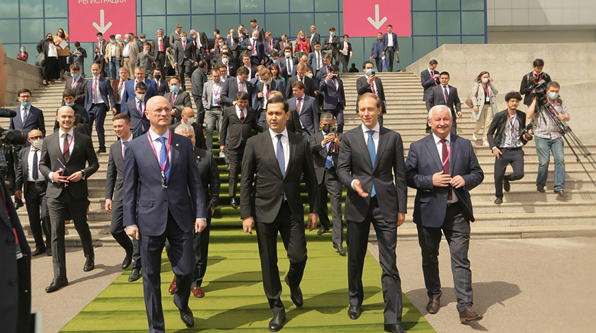 Участие в главной стратегической сессии мероприятия "Мировое промышленное производство в поисках драйверов роста" приняли государственные должностные лица стран ЕАЭС. В частности, заместитель премьер-министра по вопросам инвестиций и внешнеэкономических связей - министр инвестиций и внешней торговли Узбекистана Сардор Умурзаков, заместитель премьер-министра Казахстана Роман Скляр, Член Коллегии (министр) по промышленности и агропромышленному комплексу ЕЭК Артак Камалян, министр промышленности Беларуси Петр Пархомчик, министр промышленности и новых технологий Таджикистана Шерали Кабир, министр промышленности и торговли РФ Денис Мантуров, министр энергетики и промышленности Кыргызстана Кубанычбек Турдубаев.