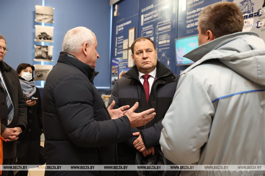 28 декабря, Жодино /Корр. БЕЛТА/. Премьер-министр Беларуси Роман Головченко во время рабочей поездки в Минскую область посещает Белорусский автомобильный завод, передает корреспондент БЕЛТА.