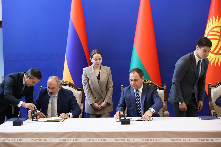 26 августа, Чолпон-Ата /Корр. БЕЛТА/. Главы правительств стран Евразийского экономического союза, в том числе премьер-министр Беларуси Роман Головченко, приняли участие в торжественной церемонии гашения памятных почтовых марок, выпущенных государствами - членами ЕАЭС в честь 10-летия Евразийской экономической комиссии, передает корреспондент БЕЛТА.