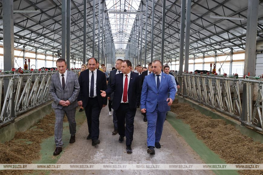Вторая точка рабочей поездки - молочно-товарный комплекс "Новополесский". Это уникальный объект на 2400 голов, где внедрены современные технологии по содержанию, кормлению и доению животных. Объект обеспечен необходимой инфраструктурой, которая делает технологический процесс максимально эффективным, а условия труда работников и специалистов, обслуживающих комплекс, - комфортными.-0-
