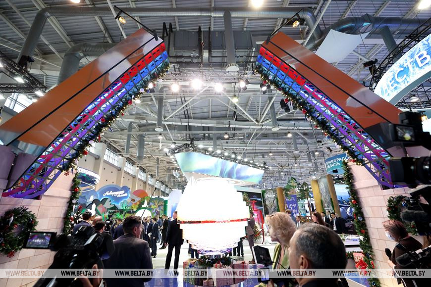 Международная выставка-форум "Россия" открылась на ВДНХ в Москве 4 ноября и продлится до 12 апреля 2024 года. В ней принимают участие 89 регионов, 22 федеральных органа исполнительной власти, 20 компаний, корпораций и общественных организаций. Участником выставки-форума является и Беларусь, которая специально к выставке-форуму подготовила в белорусском павильоне на ВДНХ обновленную экспозицию. В ней представлены экспонаты выставки "Беларусь интеллектуальная", демонстрирующие интеллектуальные и промышленные достижения нашей страны, деревянный дом из экологичных материалов с фотозоной, формирующей облик современного белорусского подворья, инсталляция Национальной библиотеки Беларуси, выполненная из монолита калийной руды, макет БелАЭС, а также белорусская техника и продукция около 110 белорусских предприятий потребительской сферы.-0-