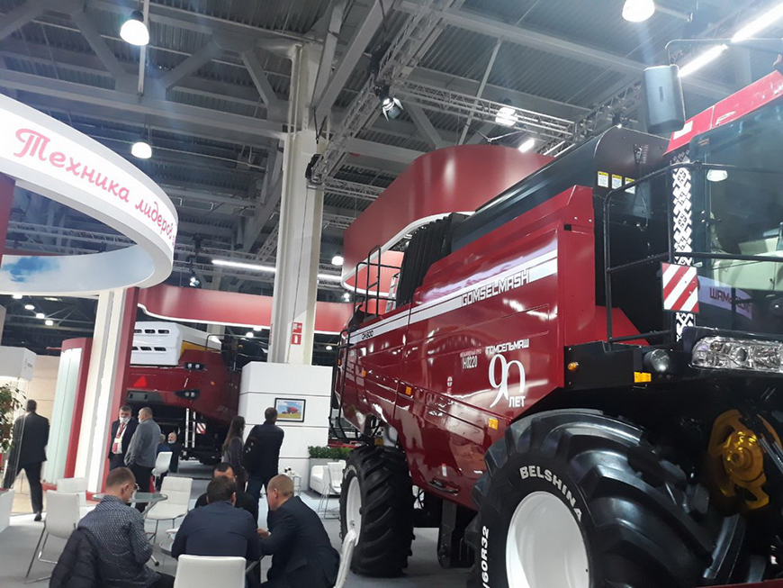 Большой ажиотаж у посетителей "Агросалона" вызвала новинка "Гомсельмаша" - GH800, зерноуборочный комбайн с гибридным молотильно-сепарирующим устройством. "Главная отличительная особенность модели - более комфортабельная кабина, в которой особое внимание уделено интерьеру и эргономике рабочего места. Кроме того, GH800 оснащен более мощным двигателем 450 л.с. Это повышает производительность и качество уборки зерновых и зернобобовых культур", - отметили в компании.
