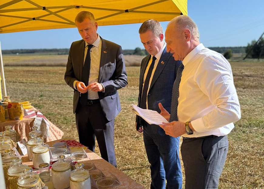 На поле под Борисовом посеяны и белорусские экспериментальные сорта. Цель - проверить, какие из них дадут больший процент клейковины, высокую урожайность и как будут реагировать на минеральные удобрения и переменчивые погодные условия.