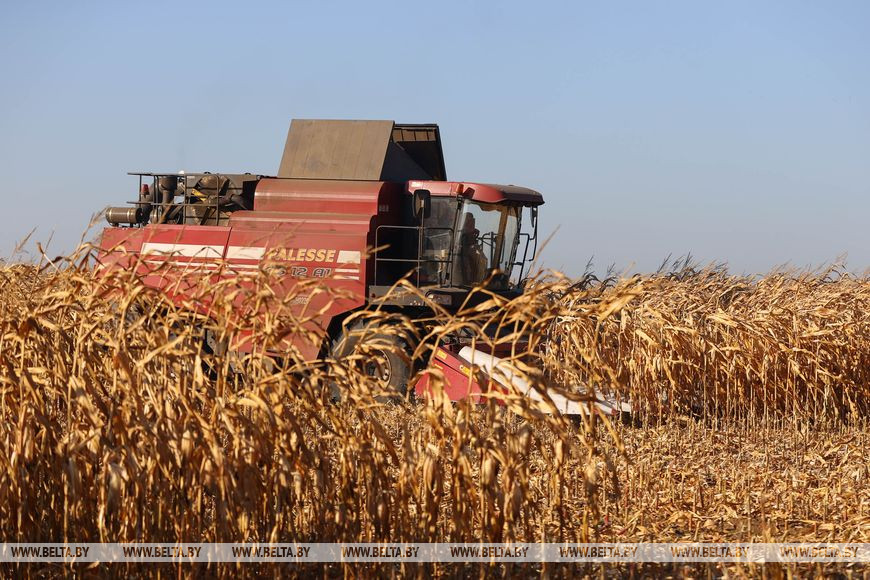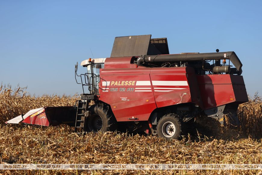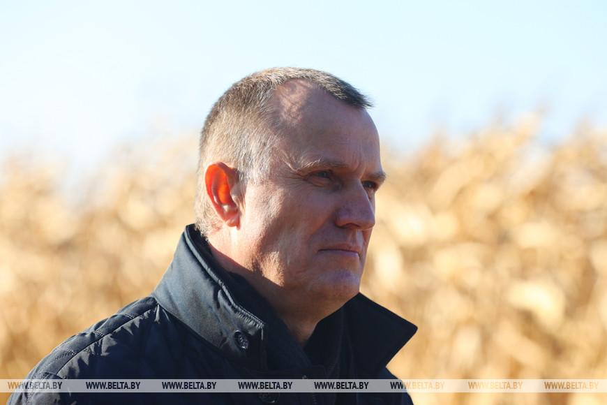 По его словам, в регионе осталось убрать 14 тыс. га кукурузы на зерно. "В день убирается порядка 2,2-2,3 тыс. га. Если считать чисто арифметически, то все и складывается. Но надо четко понимать, что это "средняя температура по госпиталю". То есть ряд хозяйств уже завершил уборку на зерно, но в ряде хозяйств она еще продолжается. На мой взгляд, здесь надо больше решений, организационных мероприятий для того, чтобы ускорить уборку в тех хозяйствах, где она задерживается, - пояснил вице-спикер. - Что я здесь имею в виду. Первое - это переброска техники. В частности комбайнов, как здесь, в Столбцовском районе. В это хозяйство перебросили от соседей комбайны и усилили уборку кукурузы на зерно. Второе - надо смотреть за отвозкой зерна, чтобы тоже комбайны не простаивали. Третий важный момент касается сушки зерна. Здесь используются несколько технологий, все механизмы задействованы. Думаю, с учетом переброски комбайнов в те сроки, которые обозначил глава государства, Минская область должна вложиться".