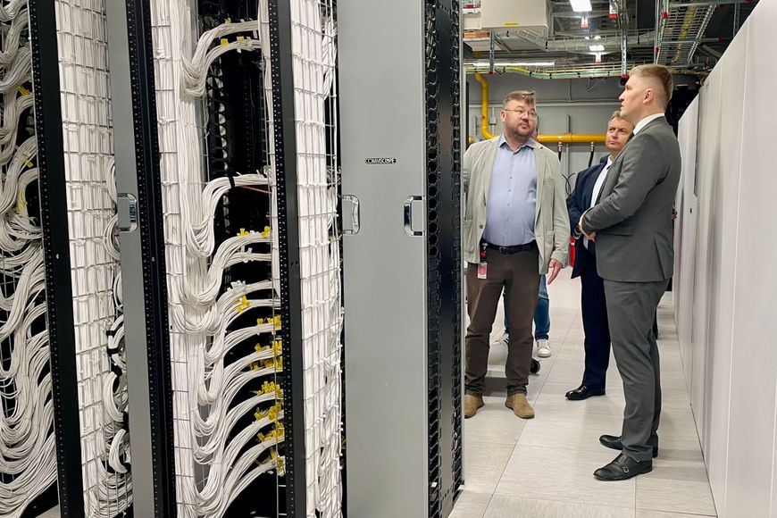 Посещение началось с экскурсии по центральному офису компании. Главе Минсвязи показали работу собственного центра обработки данных. Дата-центр является одним из самых надежных и энергоэффективных в стране и обеспечивает безотказный круглосуточный доступ к сервисам МТС.