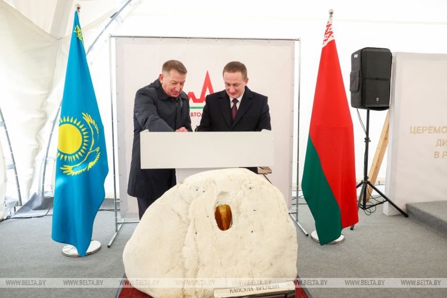 5 ноября, Астана /Корр. БЕЛТА/. Капсулу в честь строительства нового дилерского центра МАЗ заложили в Астане во время официального визита белорусской правительственной делегации в Казахстан, передает корреспондент БЕЛТА.
