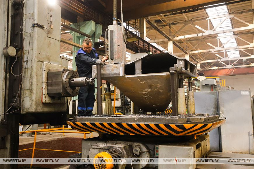 Производство горячештамповочных прессов - небольшая доля в общем товарном выпуске предприятия. "Кузлитмаш" плотно работает в кооперации с управляющей компанией холдинга БЕЛАЗ, куда поставляет узлы и детали к карьерным самосвалам. Эта ниша занимает порядка 70% в общем объеме выпуска продукции. "Это темповая продукция, которая ежедневно отгружается. То есть наши детали попадают прямо на сборку на конвейер", - уточнил руководитель.
