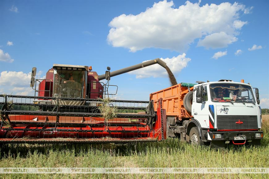 По данным на 21 июля, зерновые и зернобобовые культуры убраны с 120,7 тыс. га, что составляет 5,5% запланированной площади. По темпам работ лидирует Гомельская область: там убрано 17,6% от плана (59,9 тыс. га). В Брестской области убрано 8,79% площадей (29,7 тыс. га), Гродненской - 5,27% (16,8 тыс. га), Минской - 2,6% (12,6 тыс. га), Могилевской - 0,53% (1,78 тыс. га). В Витебской области уборка еще не началась. Всего по стране намолочено 443,8 тыс. т зерна при средней урожайности 36,8 ц/га.